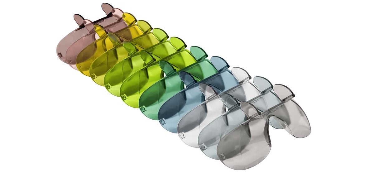 Ultradent has acquired these eye protectant shields, which can go on top of eyewear and loupes to protect from lasers and lights.