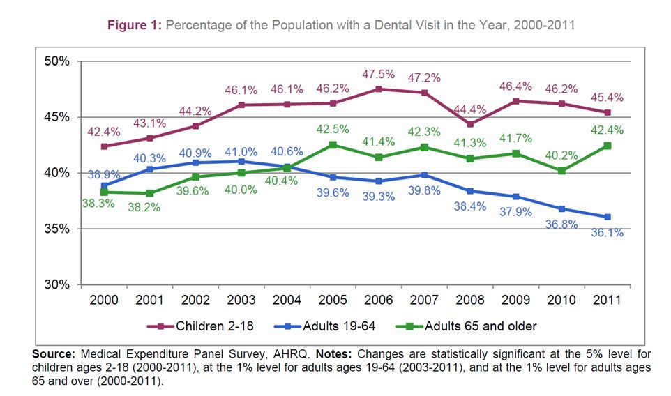 Fig.1 Percentage of the population with a dental visit from 2000 to 2011.