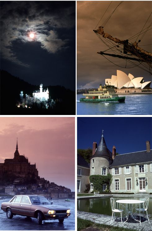 Moon over Hohenschwangau Castle, the childhood home of King Ludwig II of Bavaria; it wasn’t fancy enough for him so he built Neuschwanstein Castle which, later, was the model for Disney’s Sleeping Beauty Castle. Opera house, Sydney, Australia. Mont-Saint-Michel, Normandy, France and my borrowed Peugeot. I had to include the car; I was writing an article on it for the tabloid Physicians’ Financial News (now defunct. My writing perhaps?) Loire Valley, Domaine du Dubois