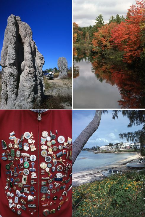 Magnetic Ant colony, Australia, New Hampshire autumn. A guide’s proud vest from our traveling past. Cropping would spoil the impact of the images. But why would you want to crop out the yellow flowers in the Bermuda shot or lose the tree trunk with its leaves that frames the photograph?