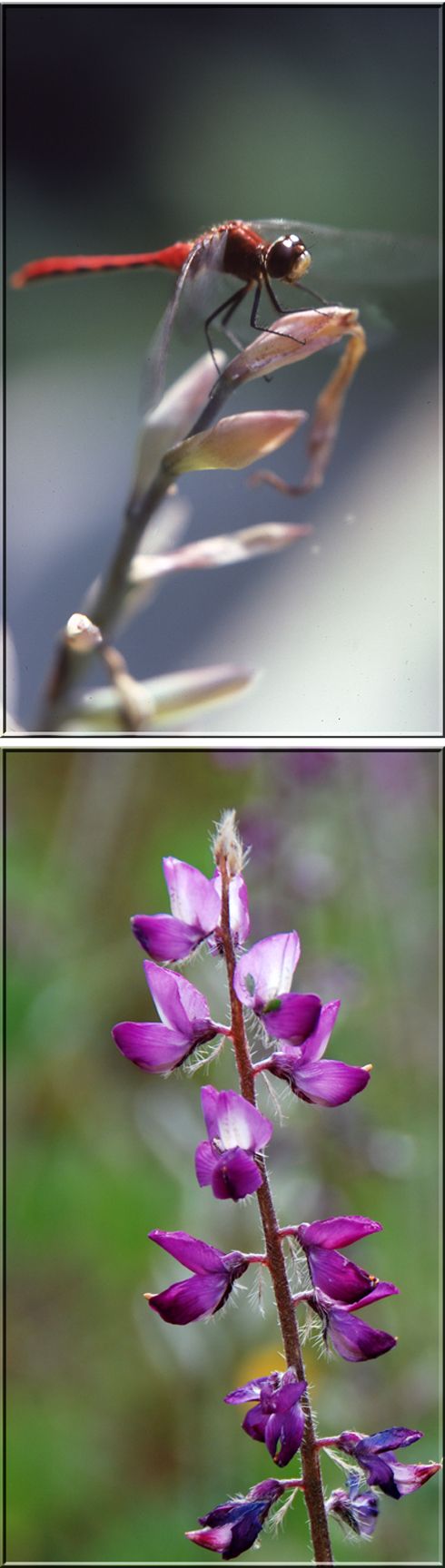 Things created as vertical by our Maker, such as long-stemmed flowers, sometimes used as a landing pad by a flying creature.