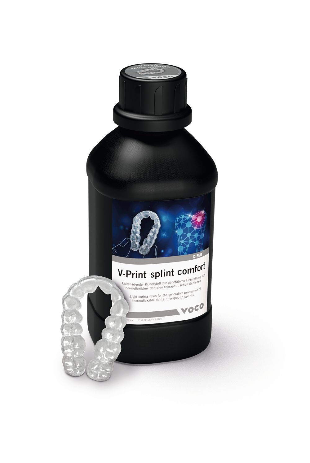 VOCO America’s new V-Print Splint Comfort 3D print resin for the production of clear, strong thermo-flexible therapeutic splints and night guards is now FDA 510k-cleared.