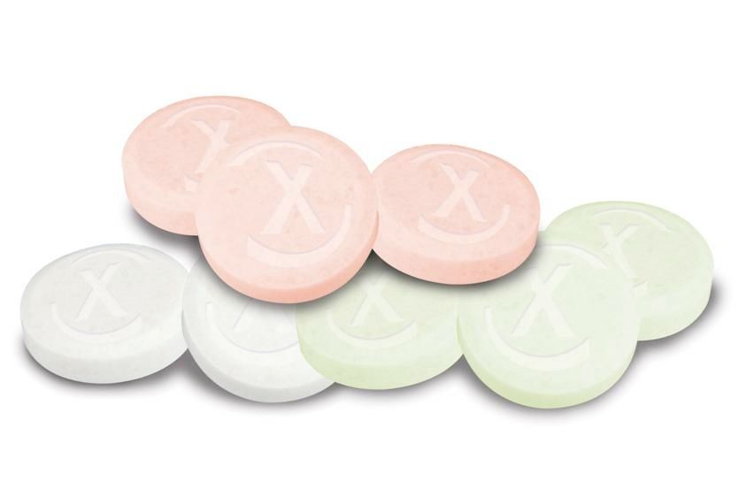 Round Hager Dry Mouth Drops hard candies are 100% sweetened with natural Xylitol.