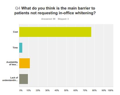 We recently asked 101 dental practices around the country about whitening. We wanted to know if it was offered and what were some of the obstacles to patients accepting it.