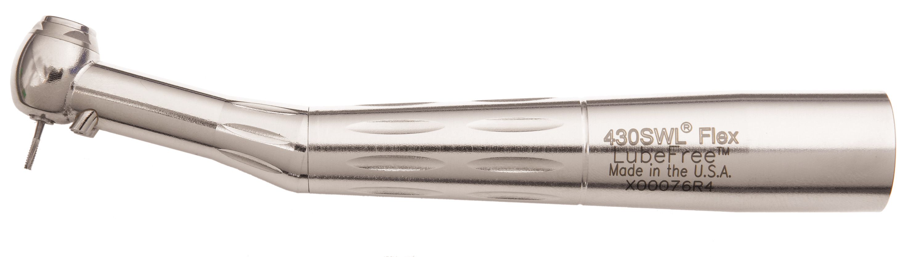 This stainless steel, fiber optic handpiece features extended handpiece turbine life with Ceramic Bearings that are light and reduce friction. The fiber optic glass was designed to withstand rigors of steam sterilization. The 430 SWL® features a small head for improved visability and access. This handpiece also offers a 360 degree Quick-Connect HiFlo Swivel that reduces tubing drag for greater operator comfort.