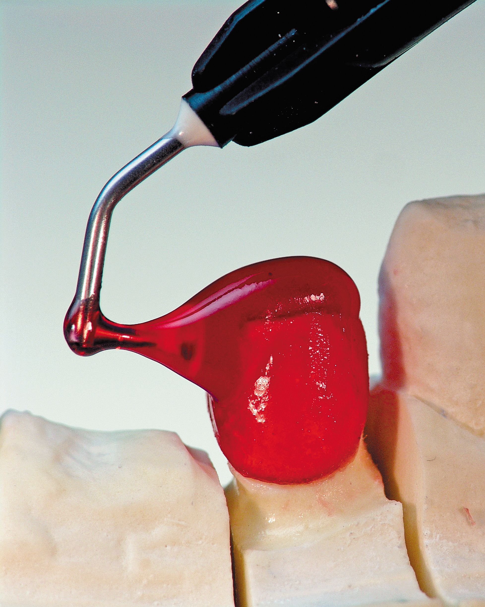 Primopattern has been available in a red shade for some time, but in mid-2013, a clear version was released. This opens the resin to a wider variety of cases, since it can both be used in the lab for modeling purposes, and for cases when clear would be preferred, such as a guided surgery situation. “We use both red and clear,” Wooddell explains. “When I’m waxing, I use the red, because I can see it. I use the clear primarily for attaching sleeves, because you want the surgeon to be able to see.”
