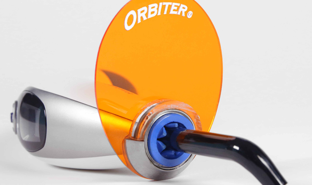 I’d love to introduce you to The Orbiter®! It is the first curing light eyeshield of its kind and stands apart from the rest for some amazing reasons! It rotates freely 360 degrees, which allows the clinician to adjust the filter into position "on the fly" while curing. It is also self-uprights, which brings the filter into your line of sight for most positions. These unique features make the curing process very efficient and saves time during the day.