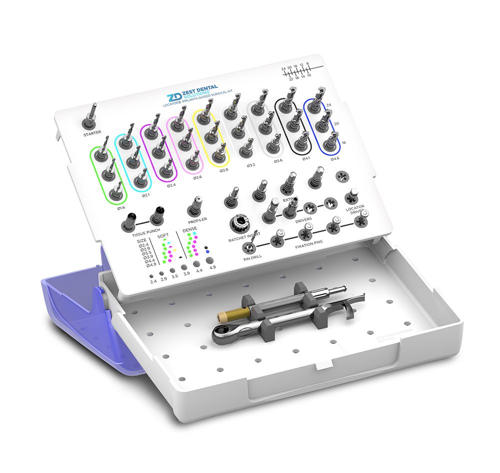 Zest Dental Solutions, the only manufacturer of the Zest LOCATOR® Family of Abutment Systems, including the LOCATOR Implant System, has released a comprehensive Guided Surgical Kit and protocol. The intuitive kit is designed to work exclusively with the LOCATOR Implant System, now delivering optimum versatility with both implant-supported FIXED full-arch and implant-retained overdenture solutions.