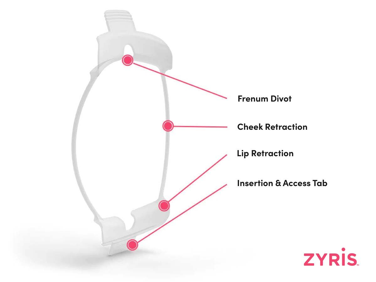 Crafted from a semi-flexible, biodegradable BPA-free polymer, the single-use design minimizes environmental impact while adhering to infection control protocols. This not only saves time for dental professionals but also contributes to a reduction in waste in the dental practice. With the help of direct feedback from clinicians, Zyris designed this retractor with ergonomics in mind. Quick adjustment tabs ensure better maneuverability, placement, and reinsertion in a matter of seconds, making it a user-friendly tool that integrates with existing dental instruments.