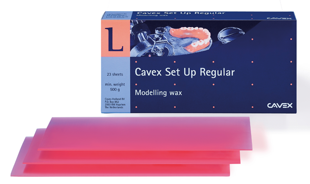 The secret of a good modelling wax lies in the recipe. Cavex is said to carefully combine paraffin, microwaxes, natural wax and pigments to ensure the melting points are never too far apart, thus ensuring an even and predictable melting and curing. Cavex offers a choice of soft, regular, hard and extra hard. The procedure is the same, but the melting point and the final hardness differ. The wax plates are of ample size and usually sufficient for two prostheses.